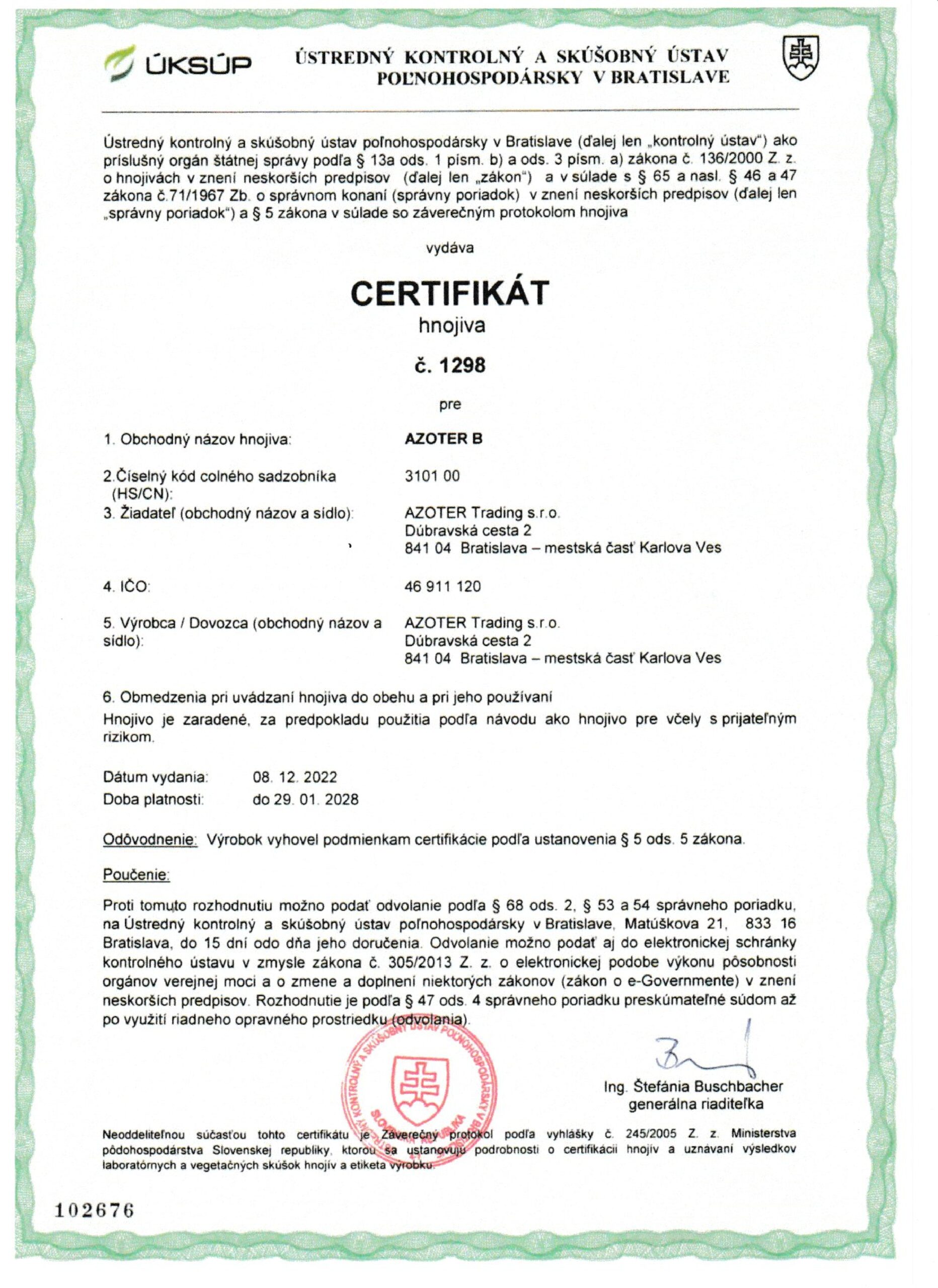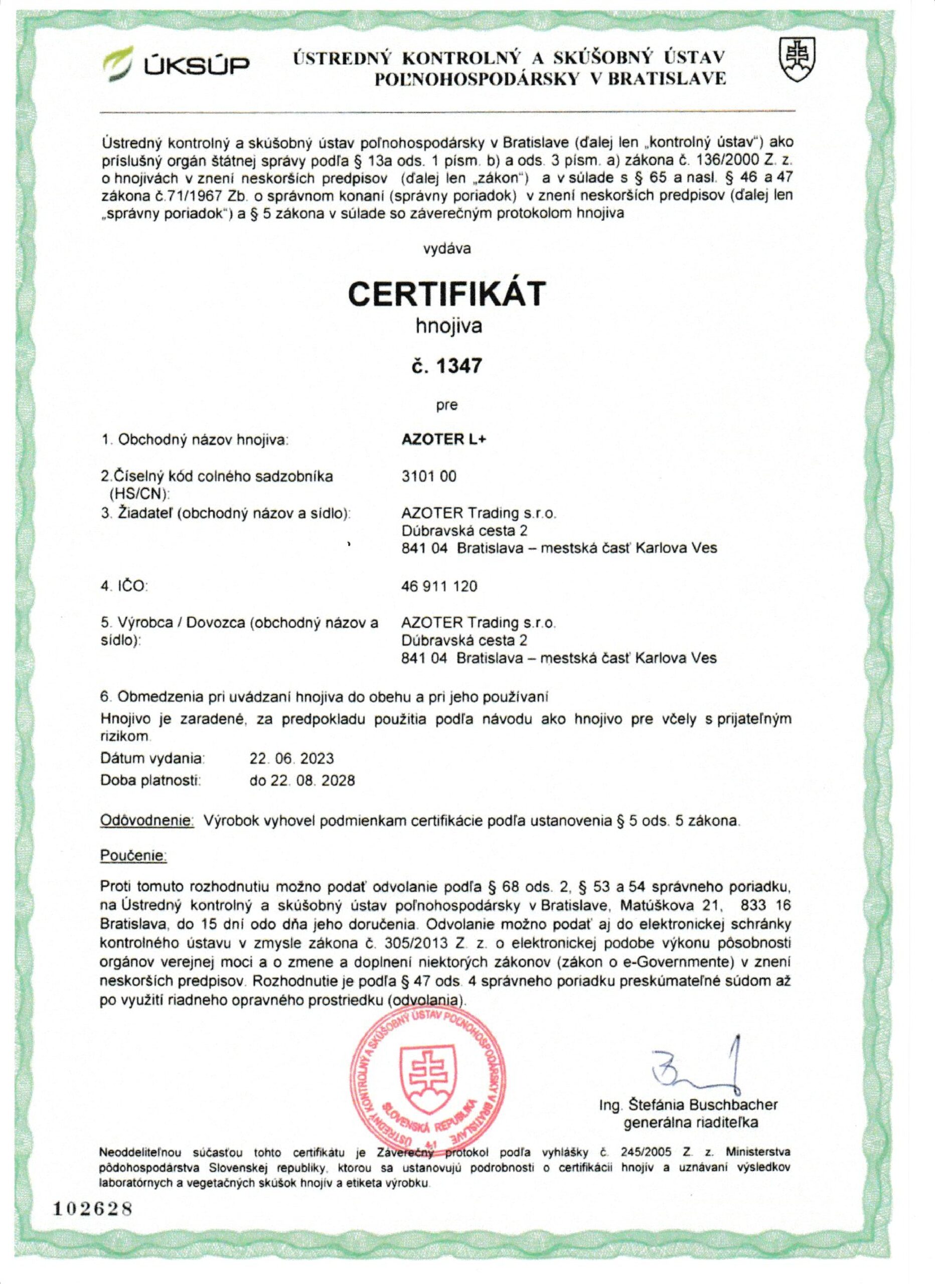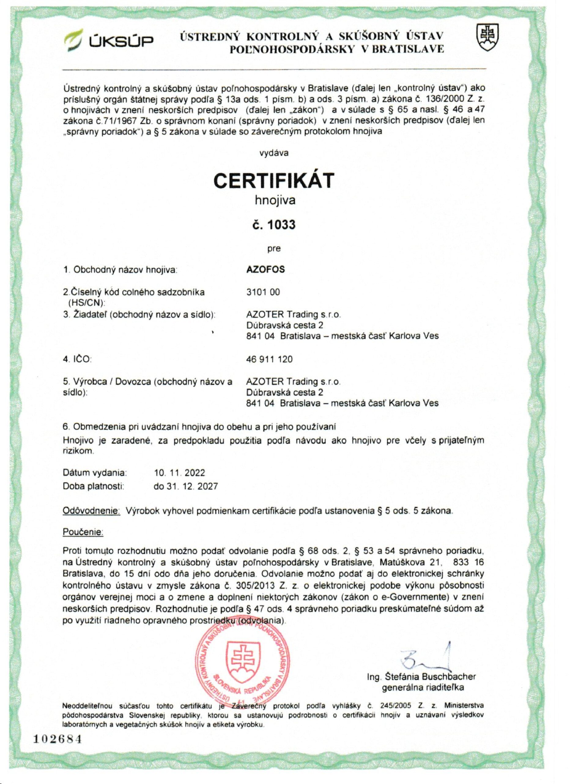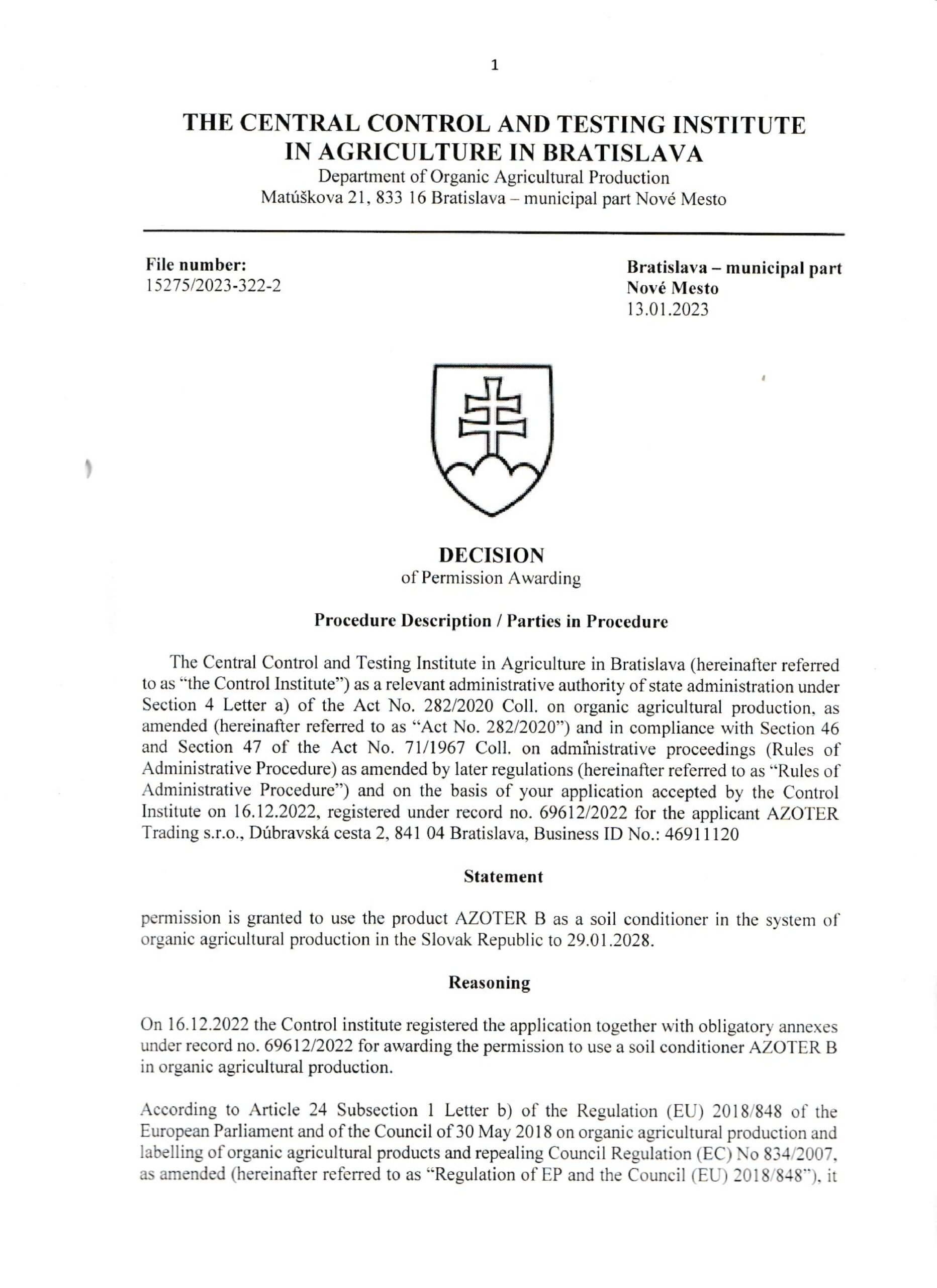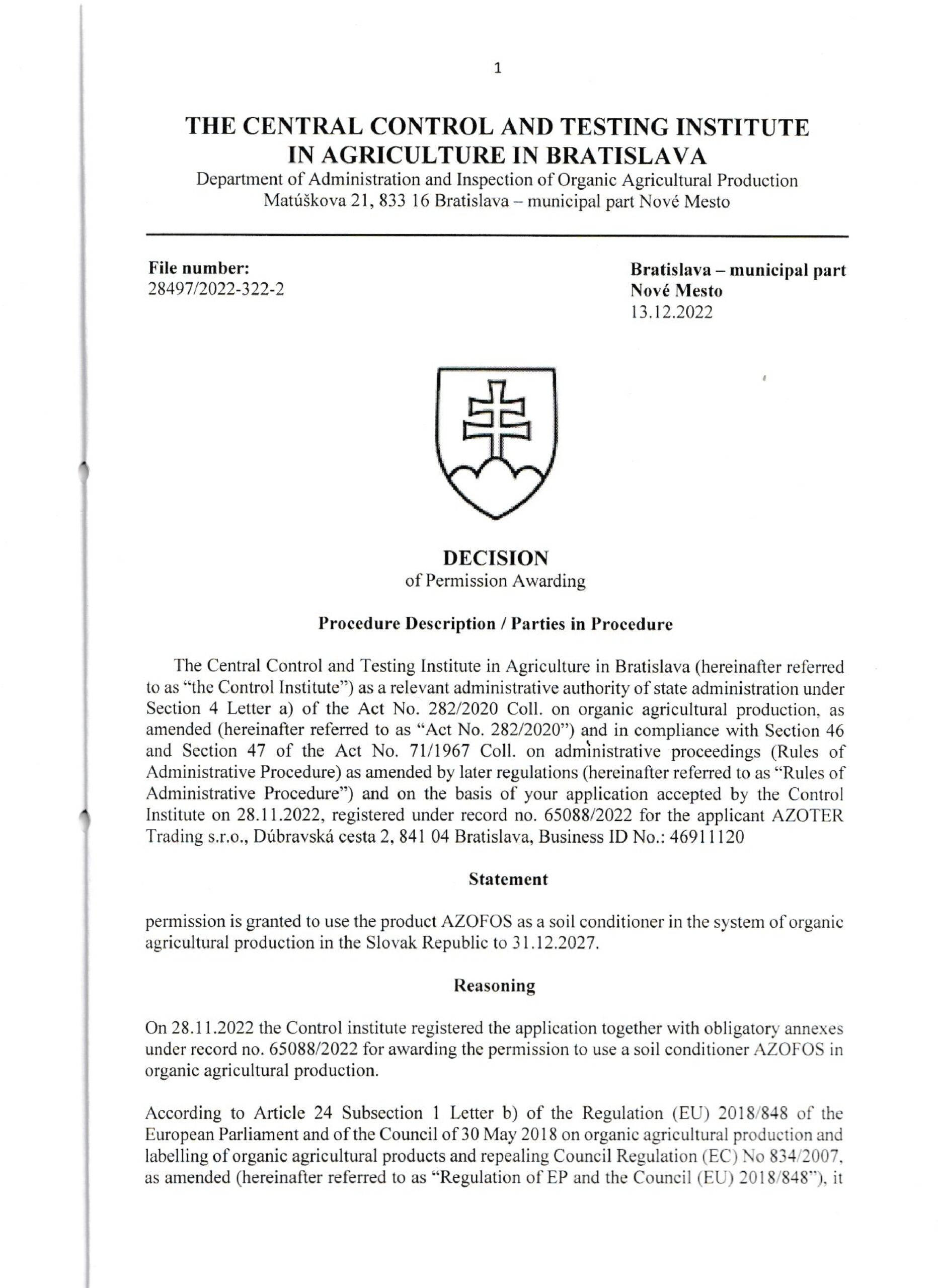 AZOTER AZORHIZ Povolenie 1