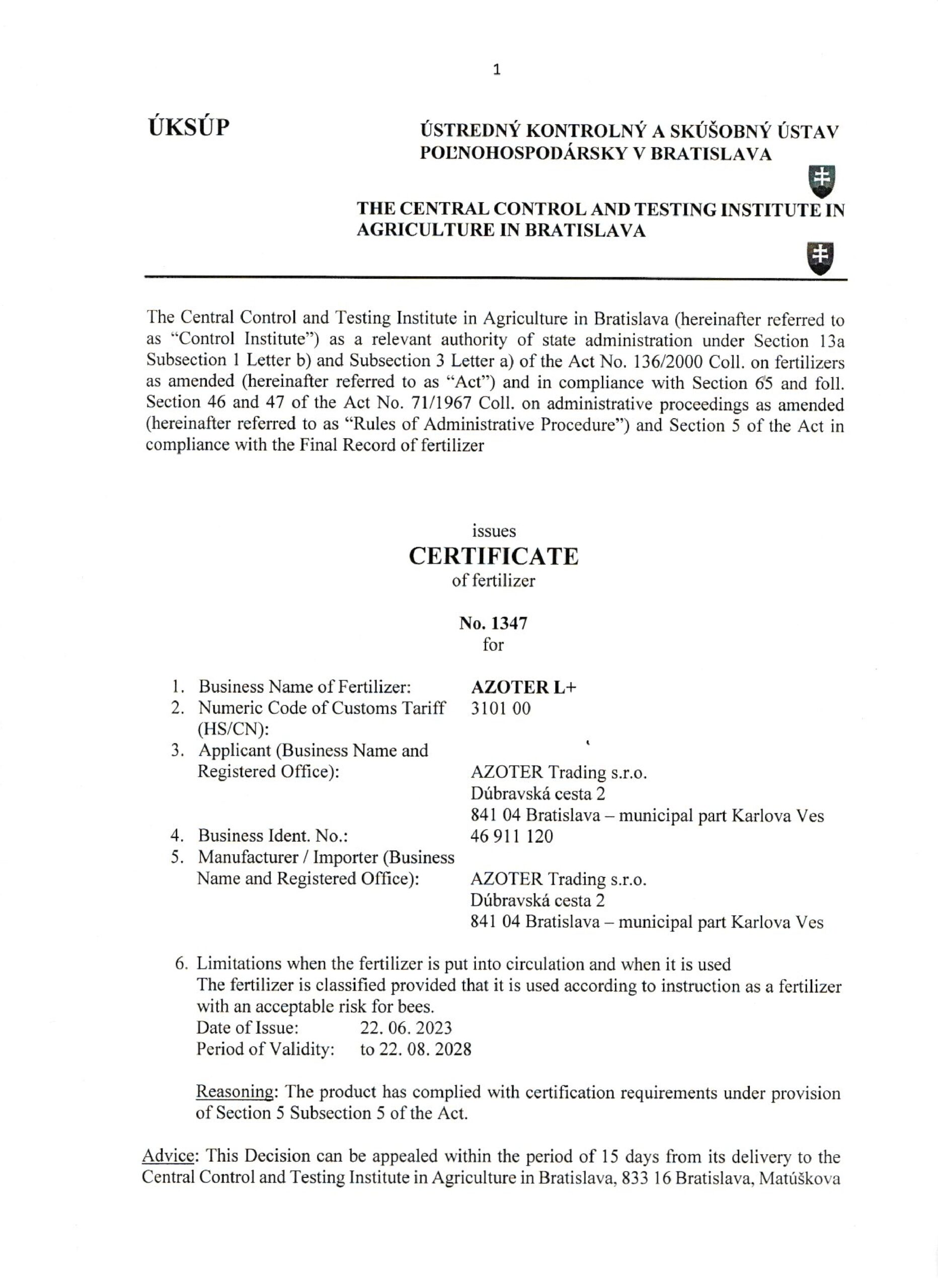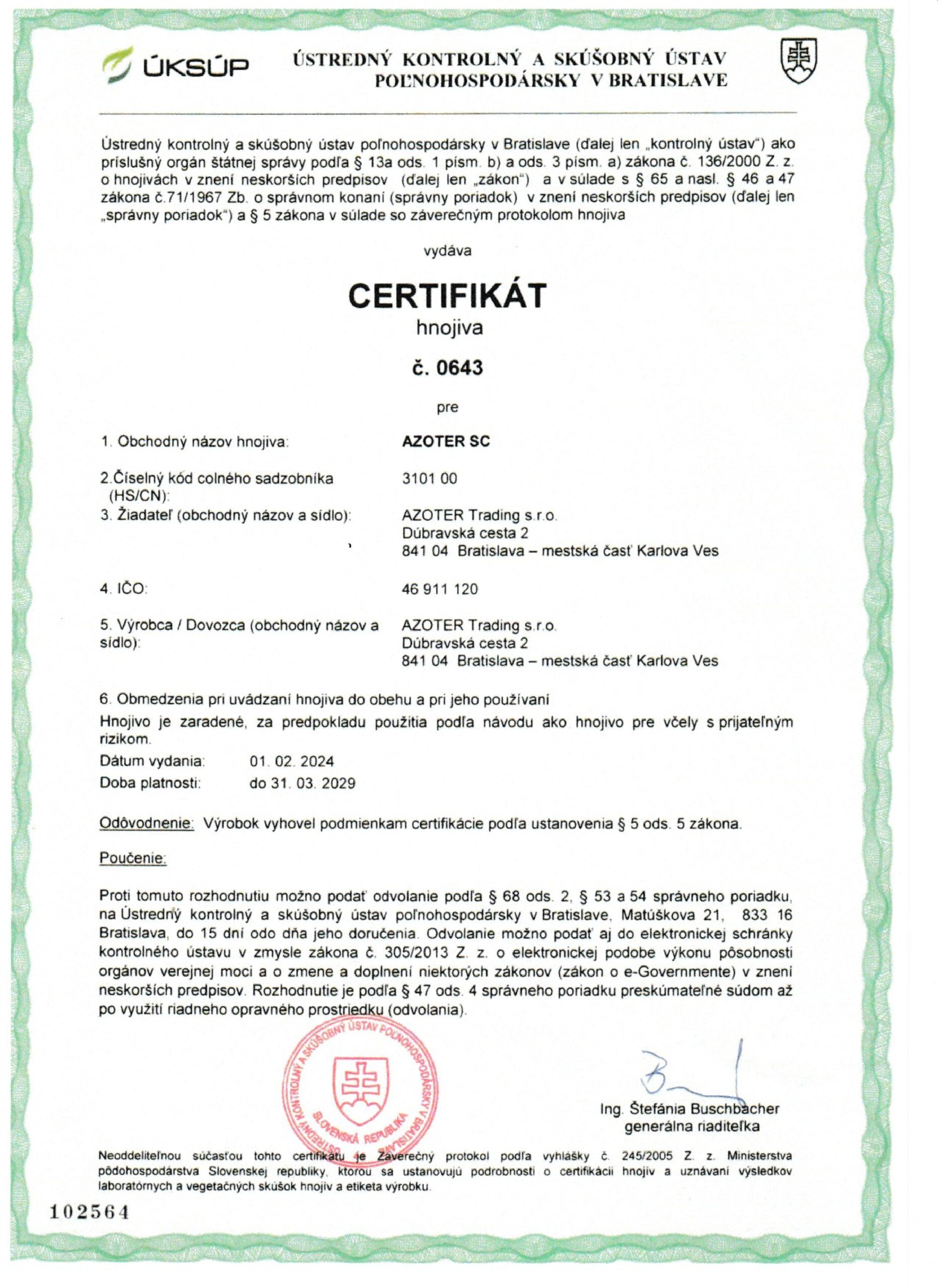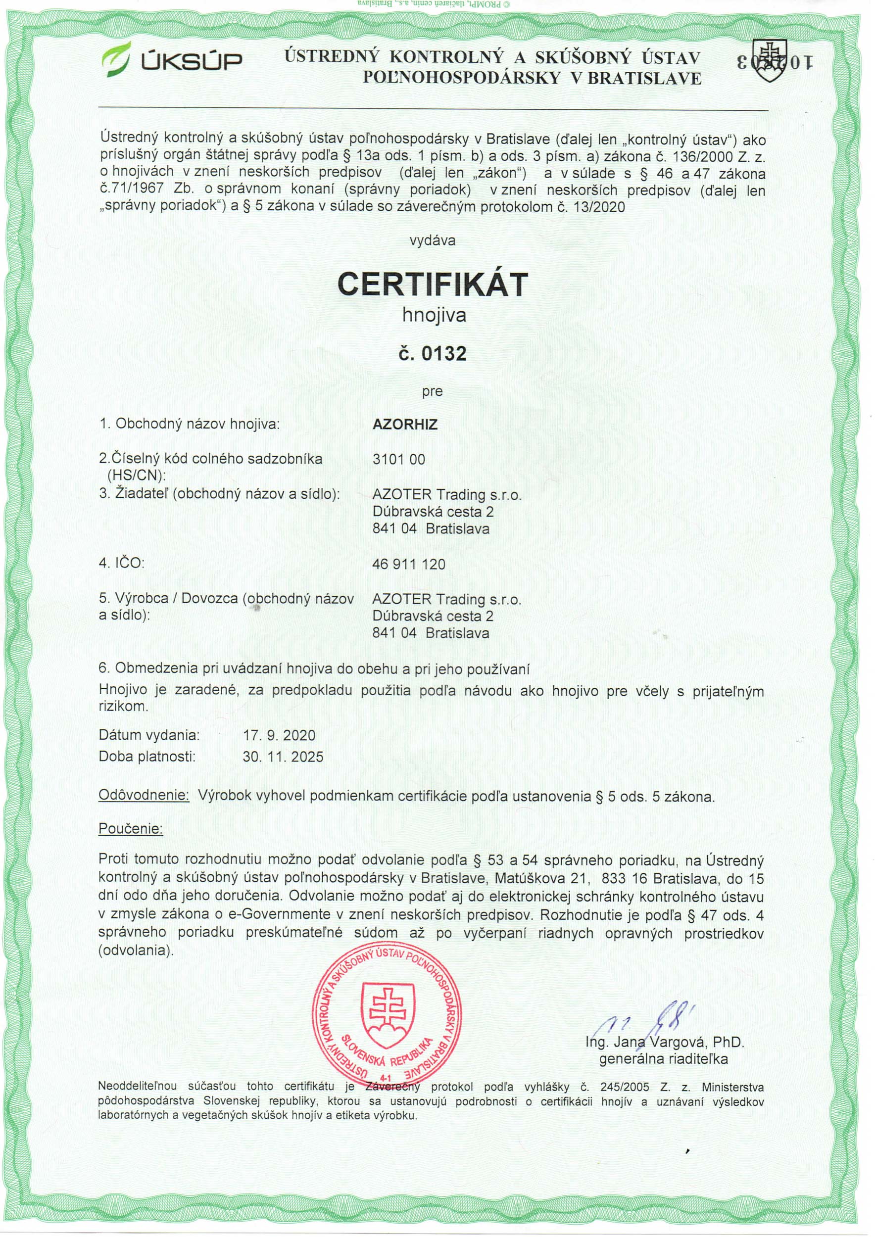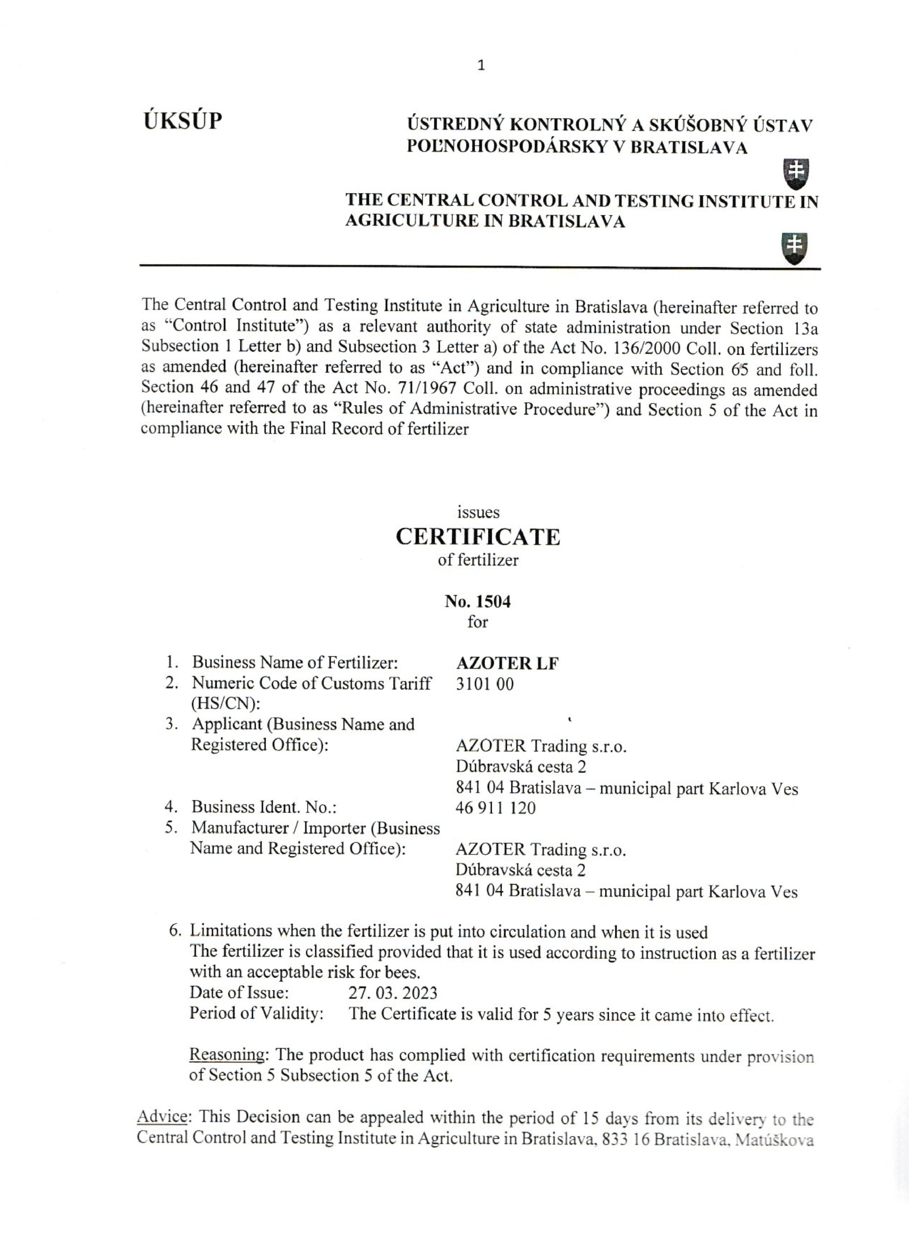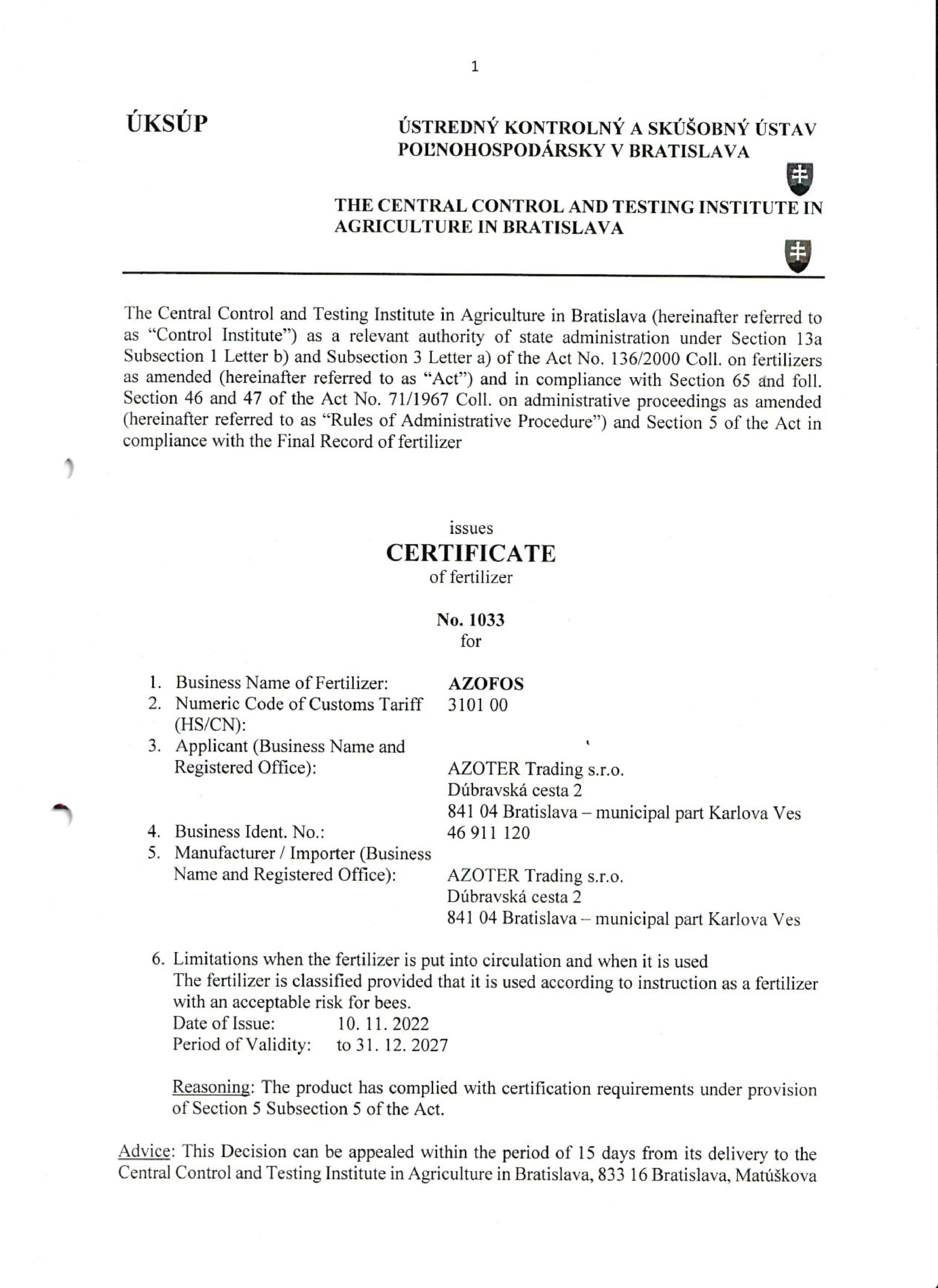 AZOTER AZORHIZ Povolenie 1