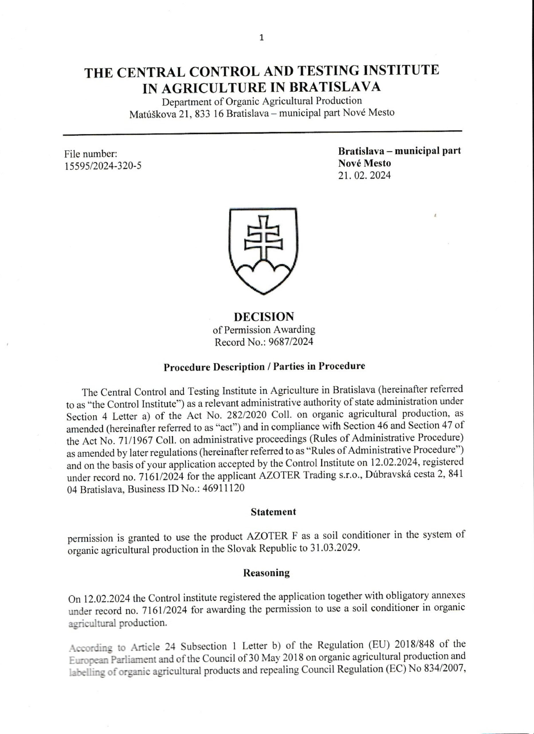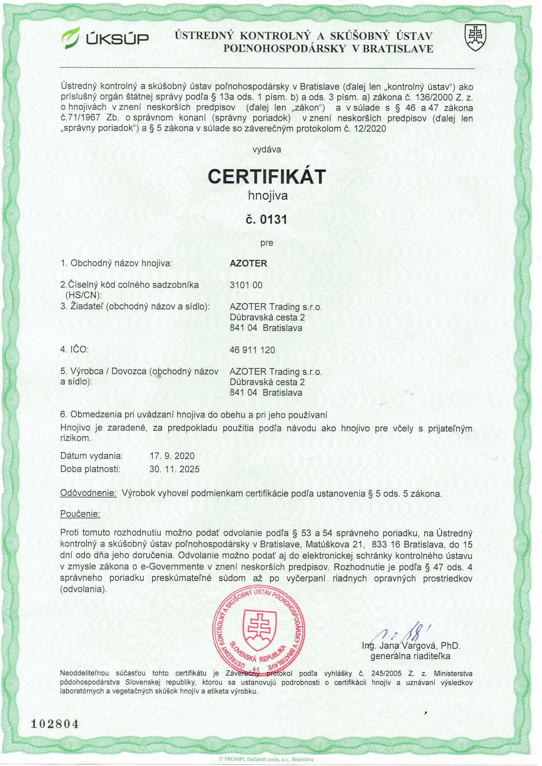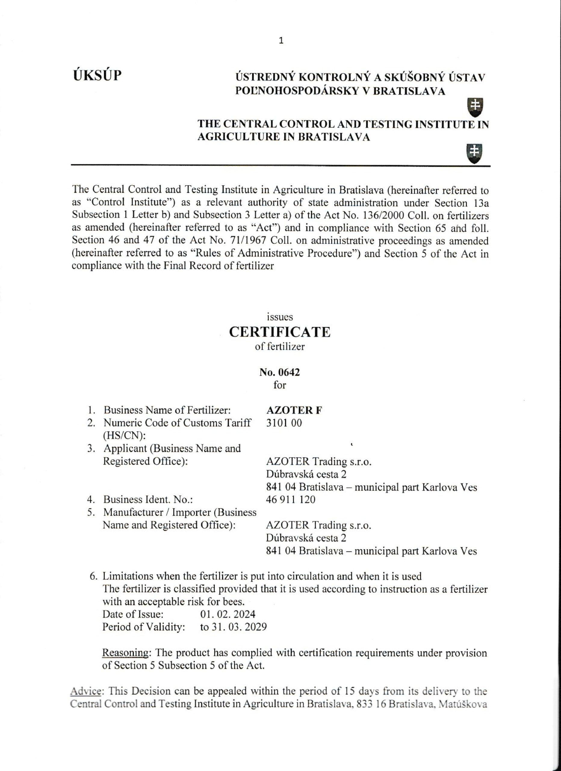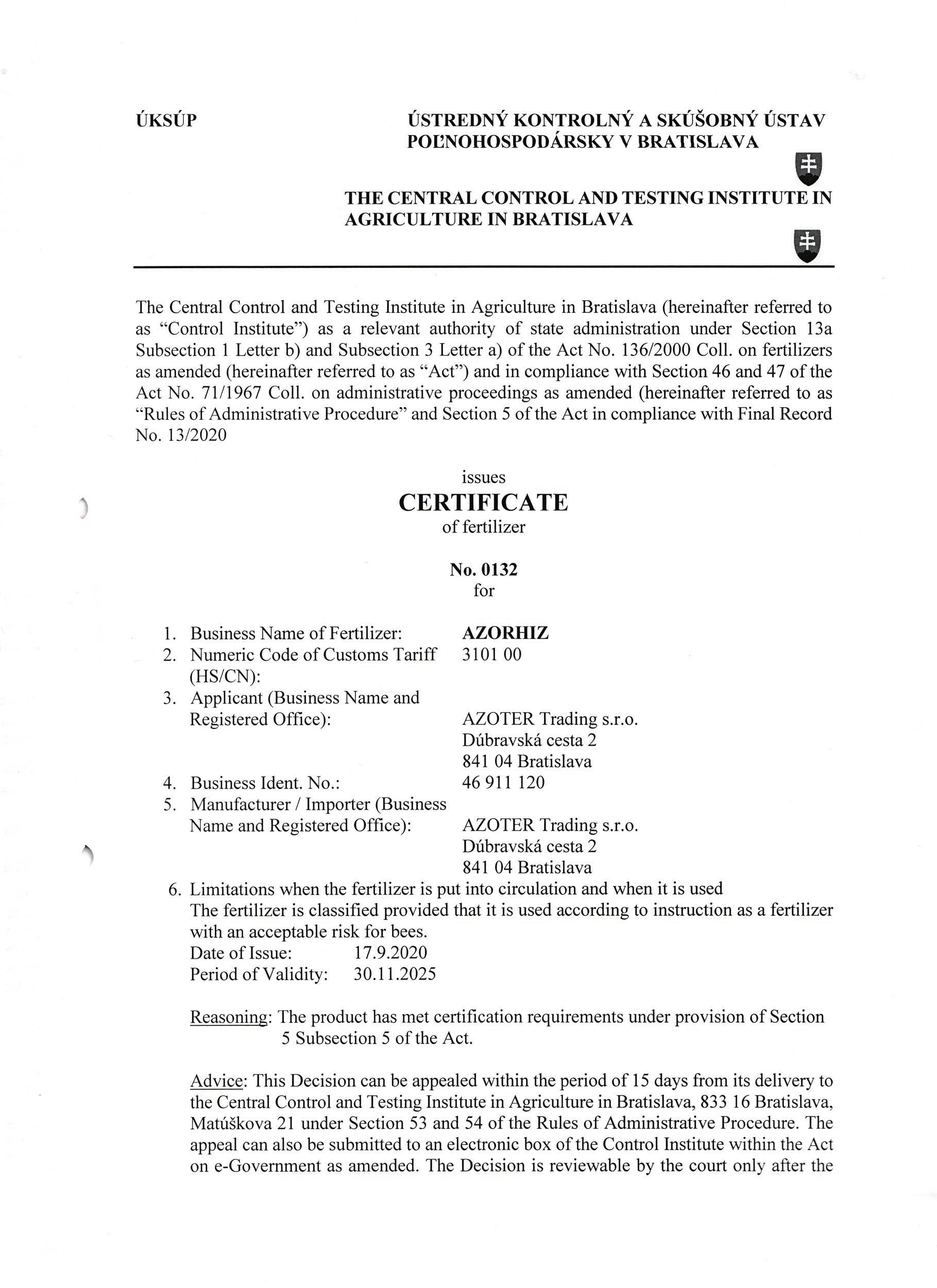 AZOTER AZORHIZ Povolenie 1