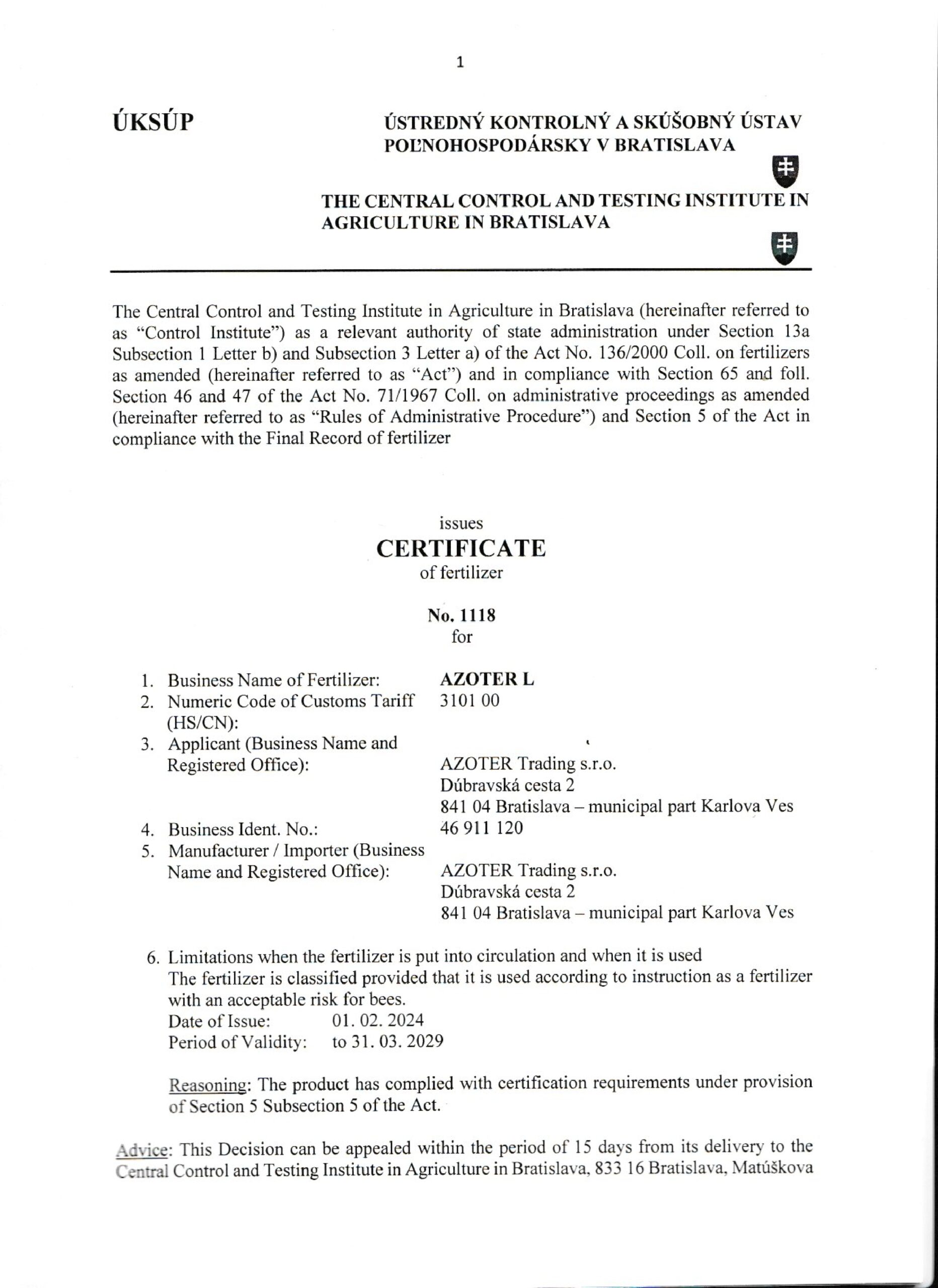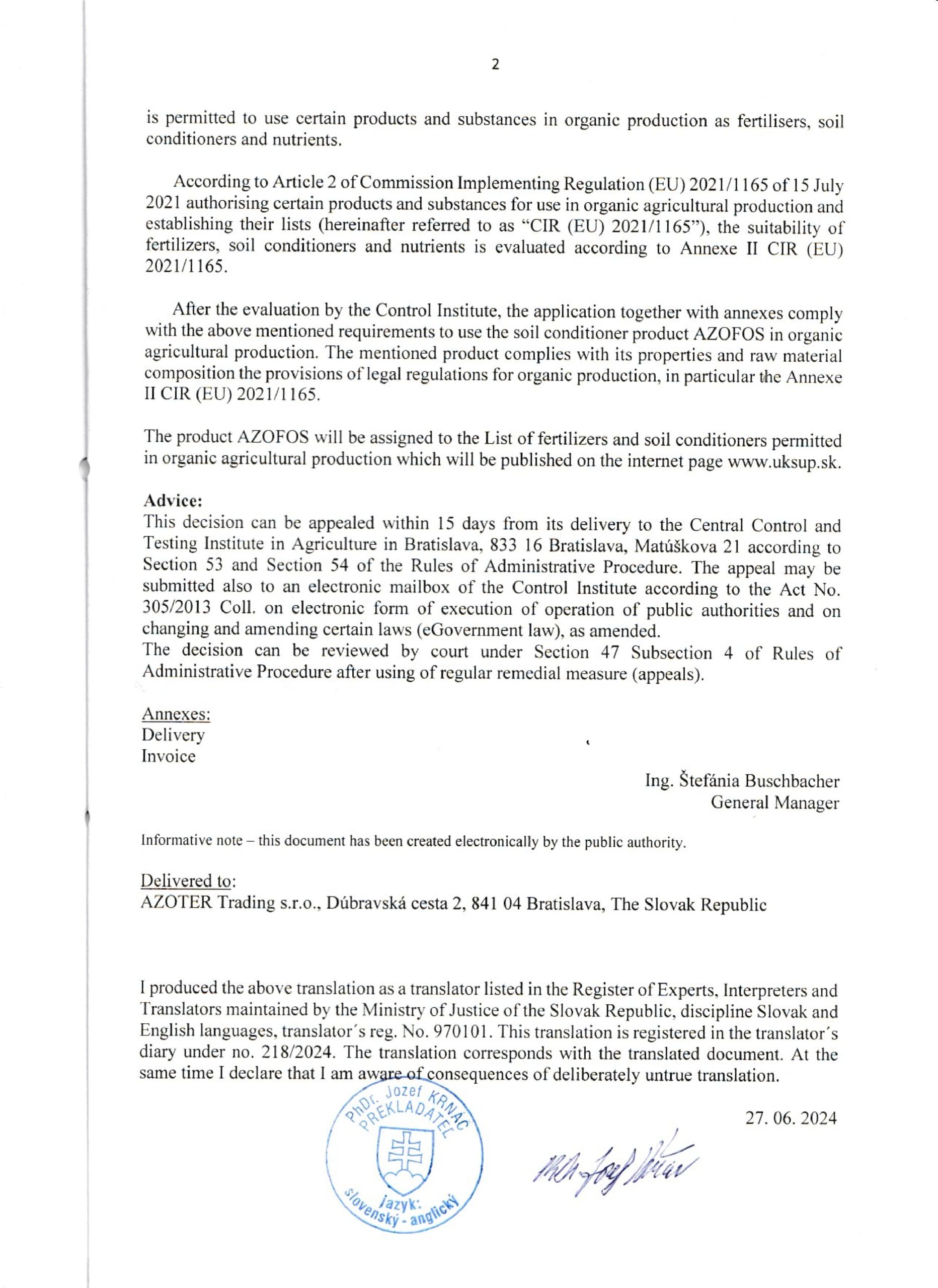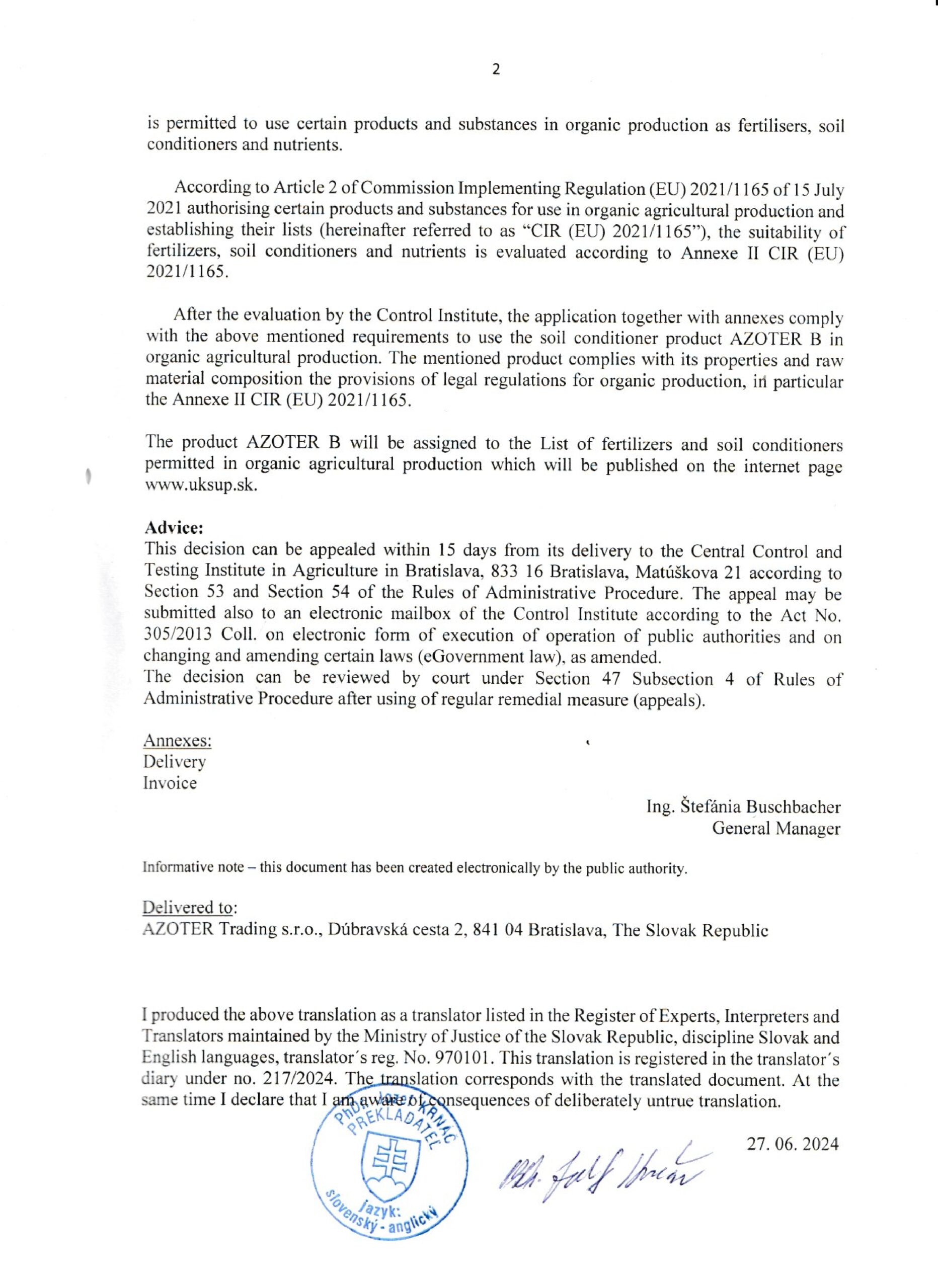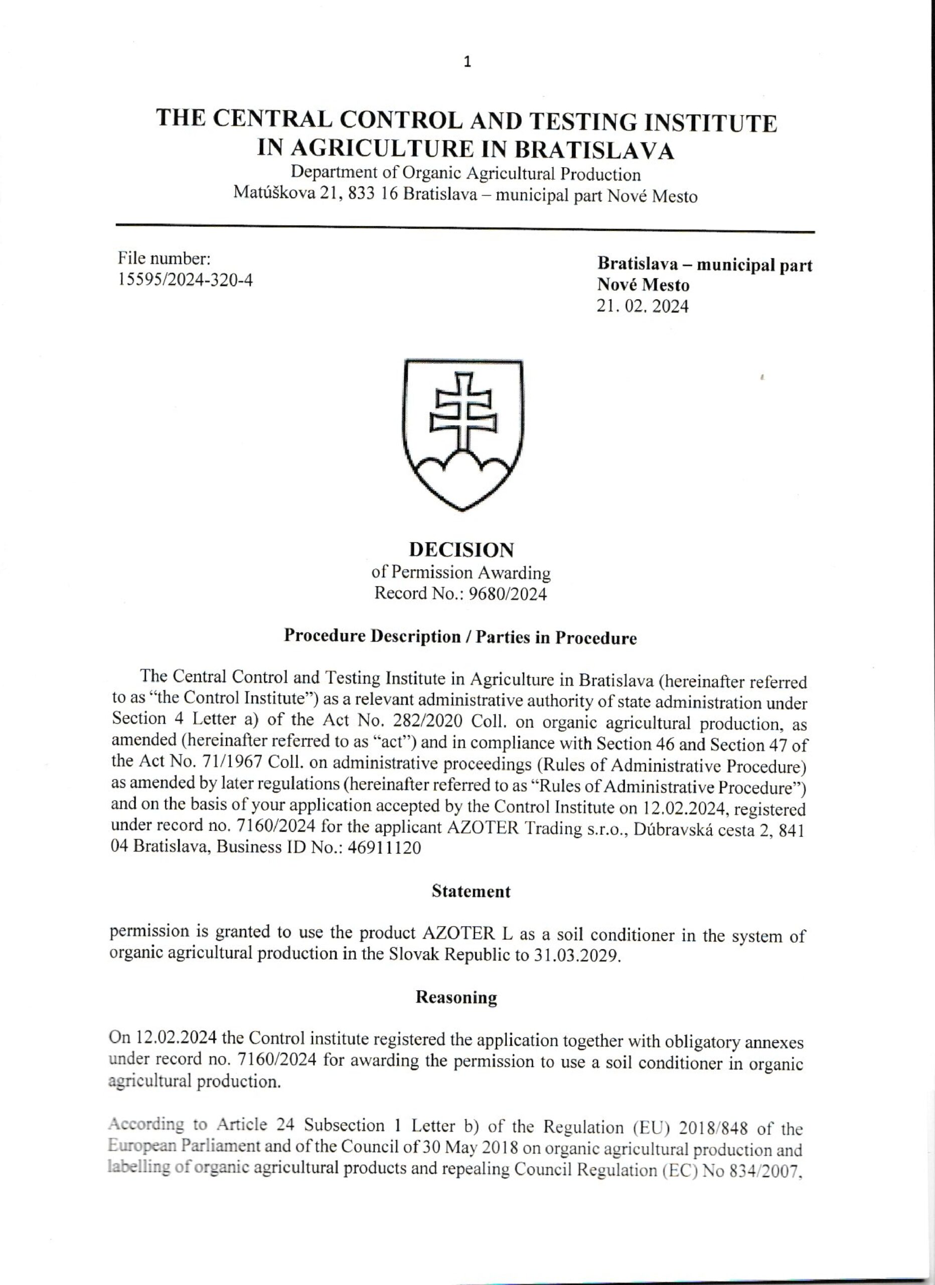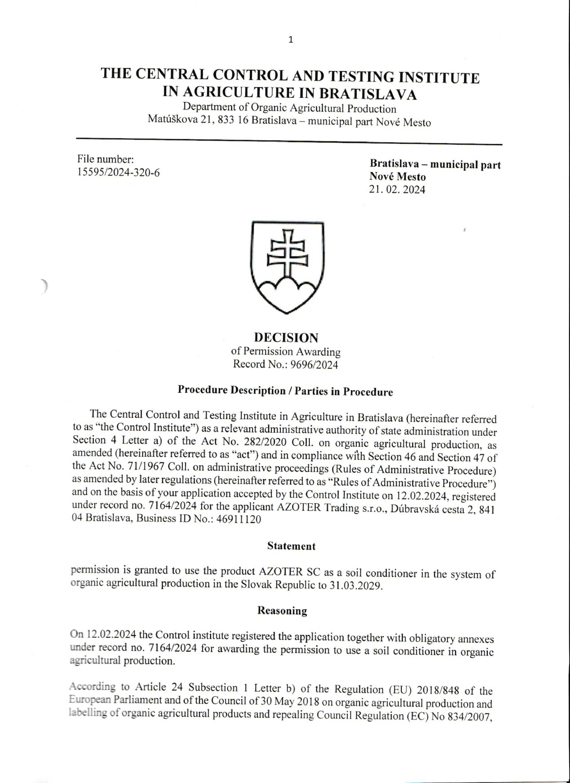 AZOTER AZORHIZ Povolenie 1