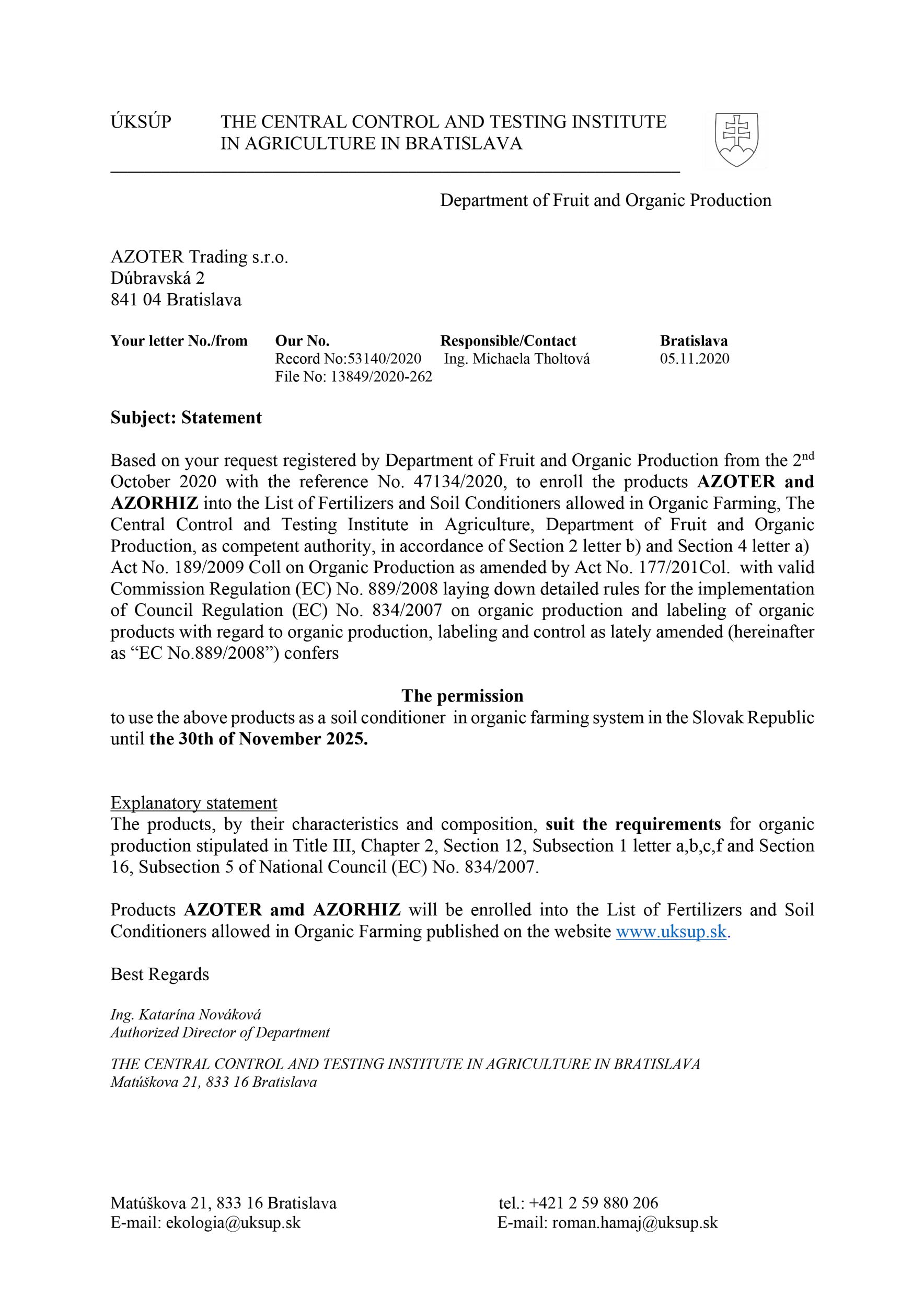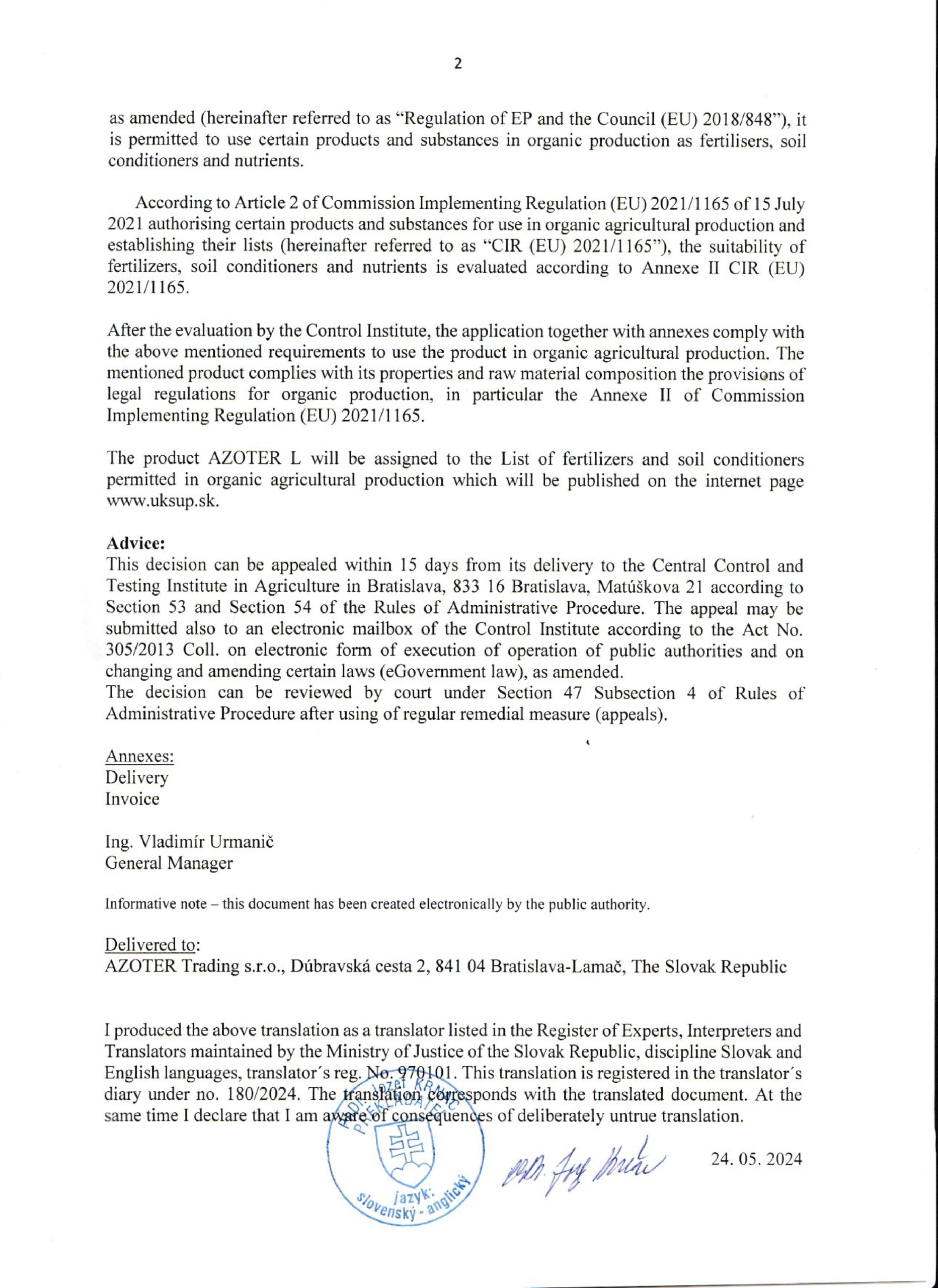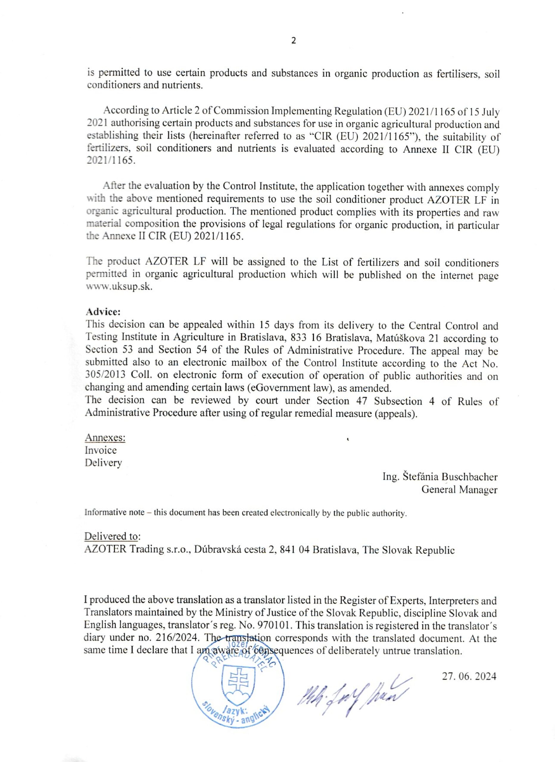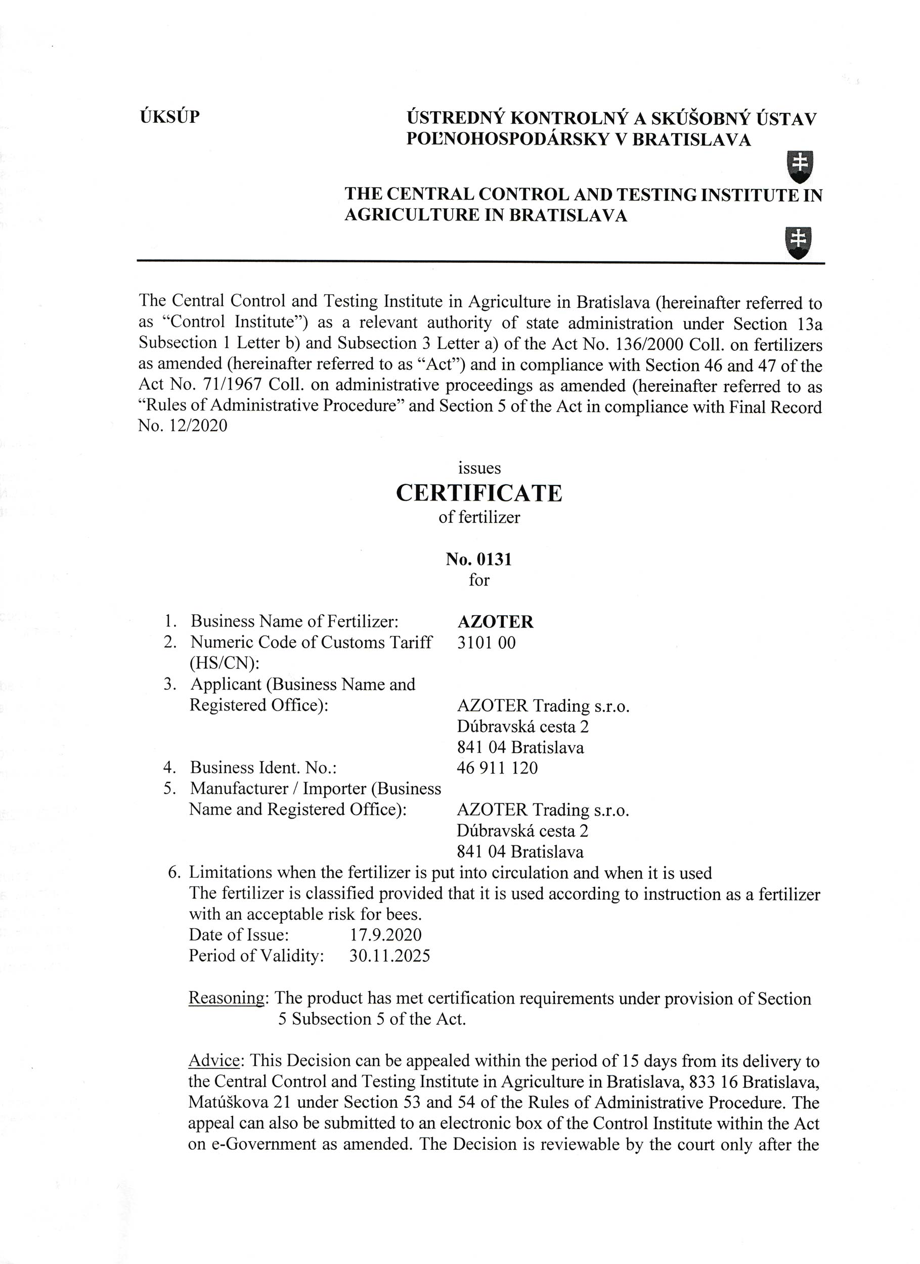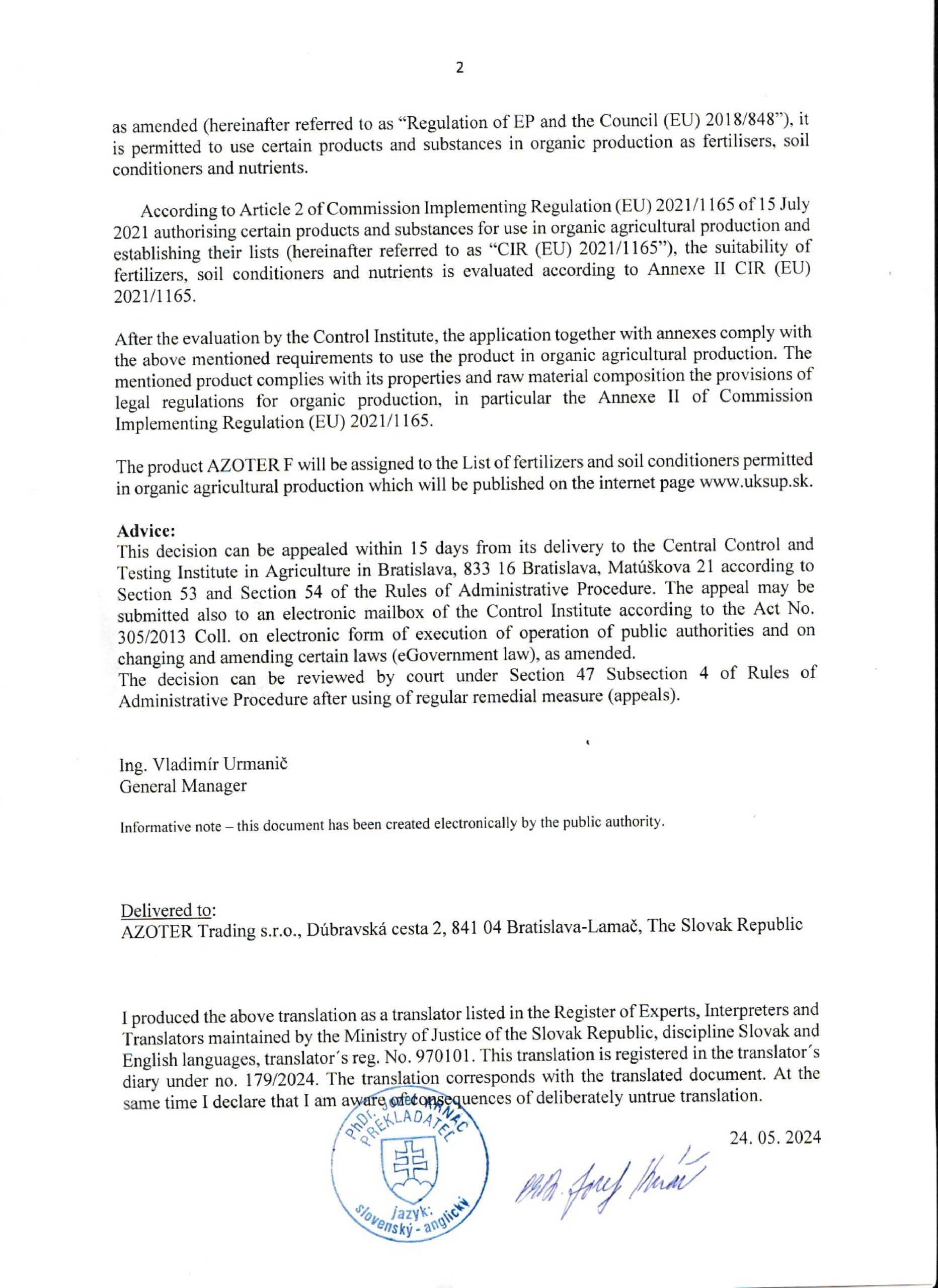 AZOTER AZORHIZ Povolenie 1